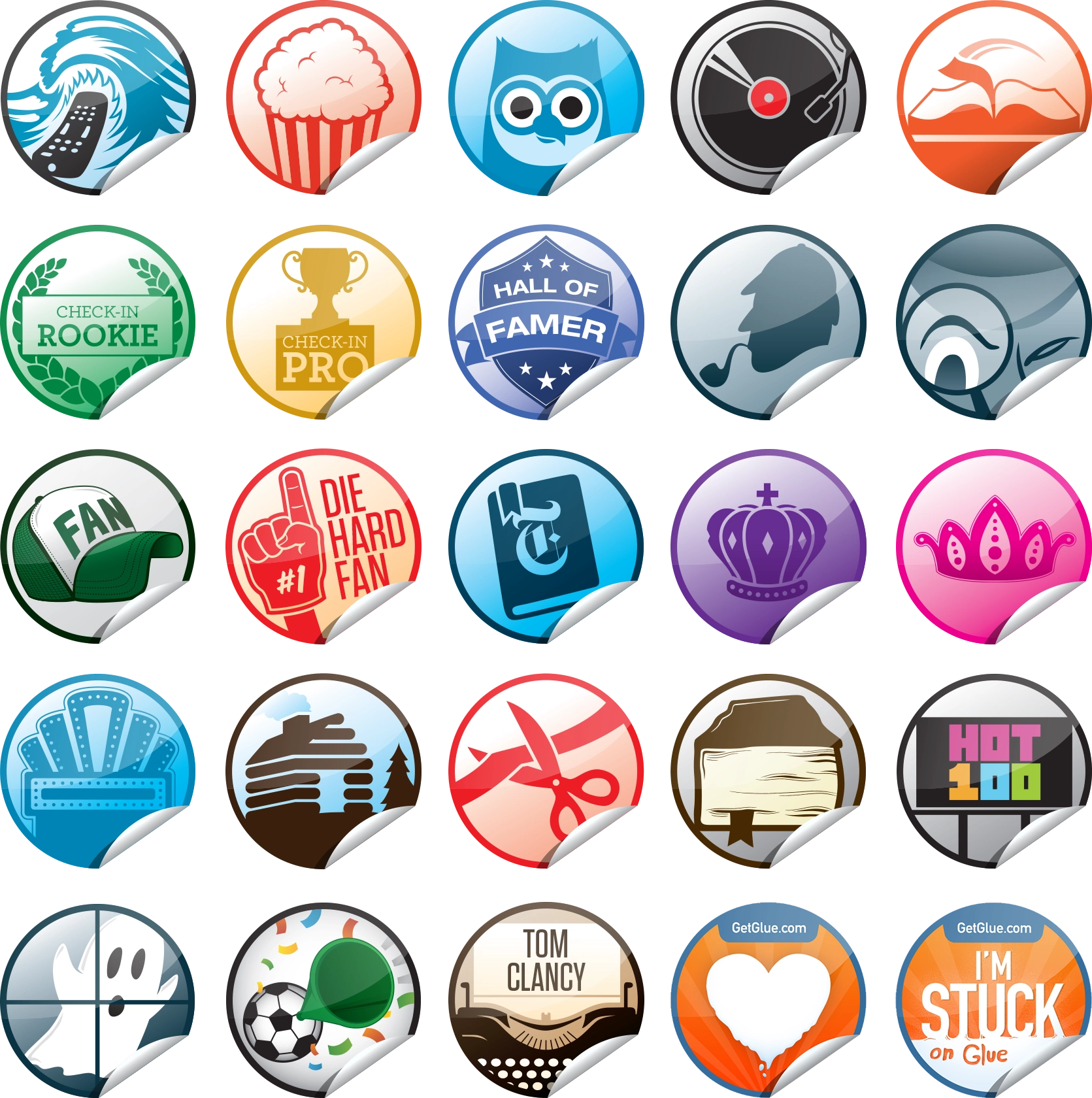Variety of stickers (circa 2010) I designed for GetGlue, which was a social network that rewarded its 4M users with stickers (digital and physical stickers) when they interacted with movies, shows, books and other topics on the platform and when they reached certain milestones.