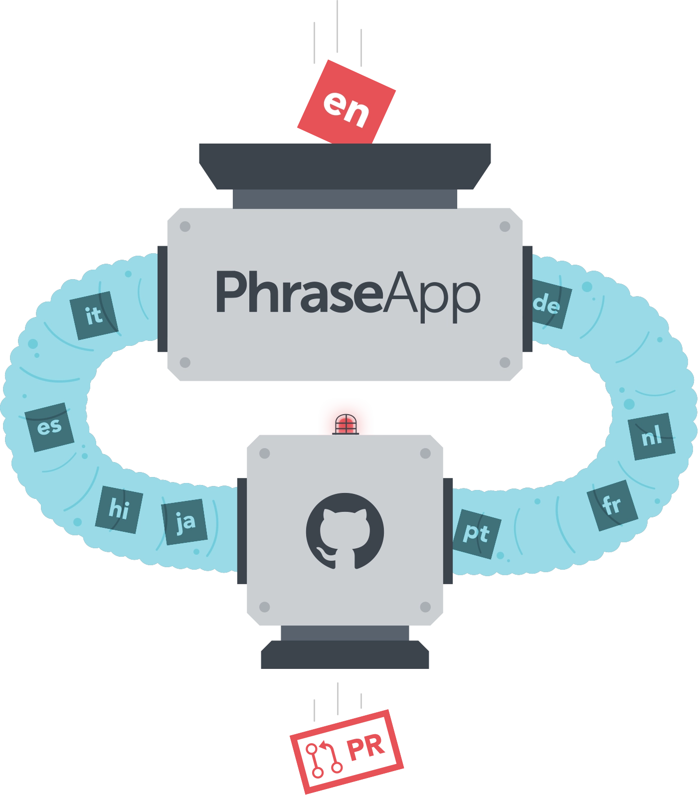 An illustration for a presentation I made to the Sticker Mule engineering team where I walked through our integration with PhraseApp and related workflows. This is a scientifically-accurate representation.