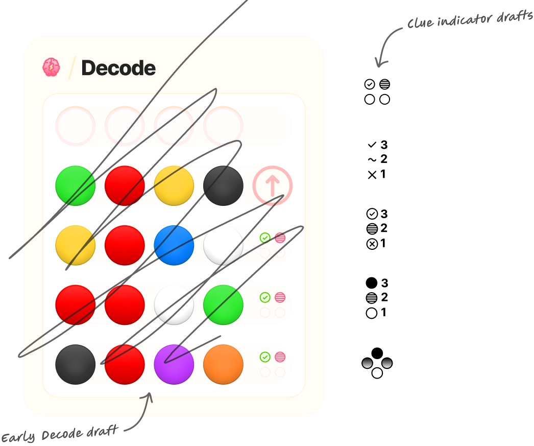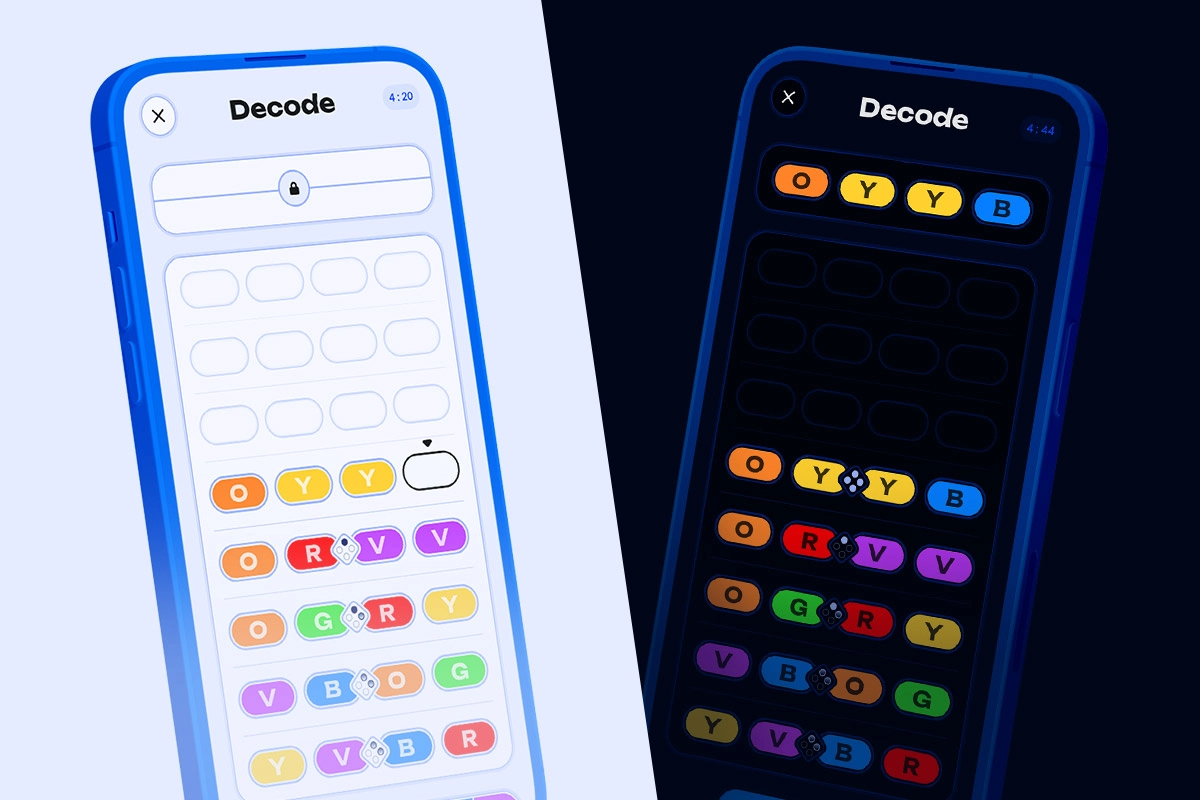 Decode was the 3rd game, and is the one I play the most. It's essentially a 1-player version of the game Mastermind, where you try to solve for a hidden code based on clues.