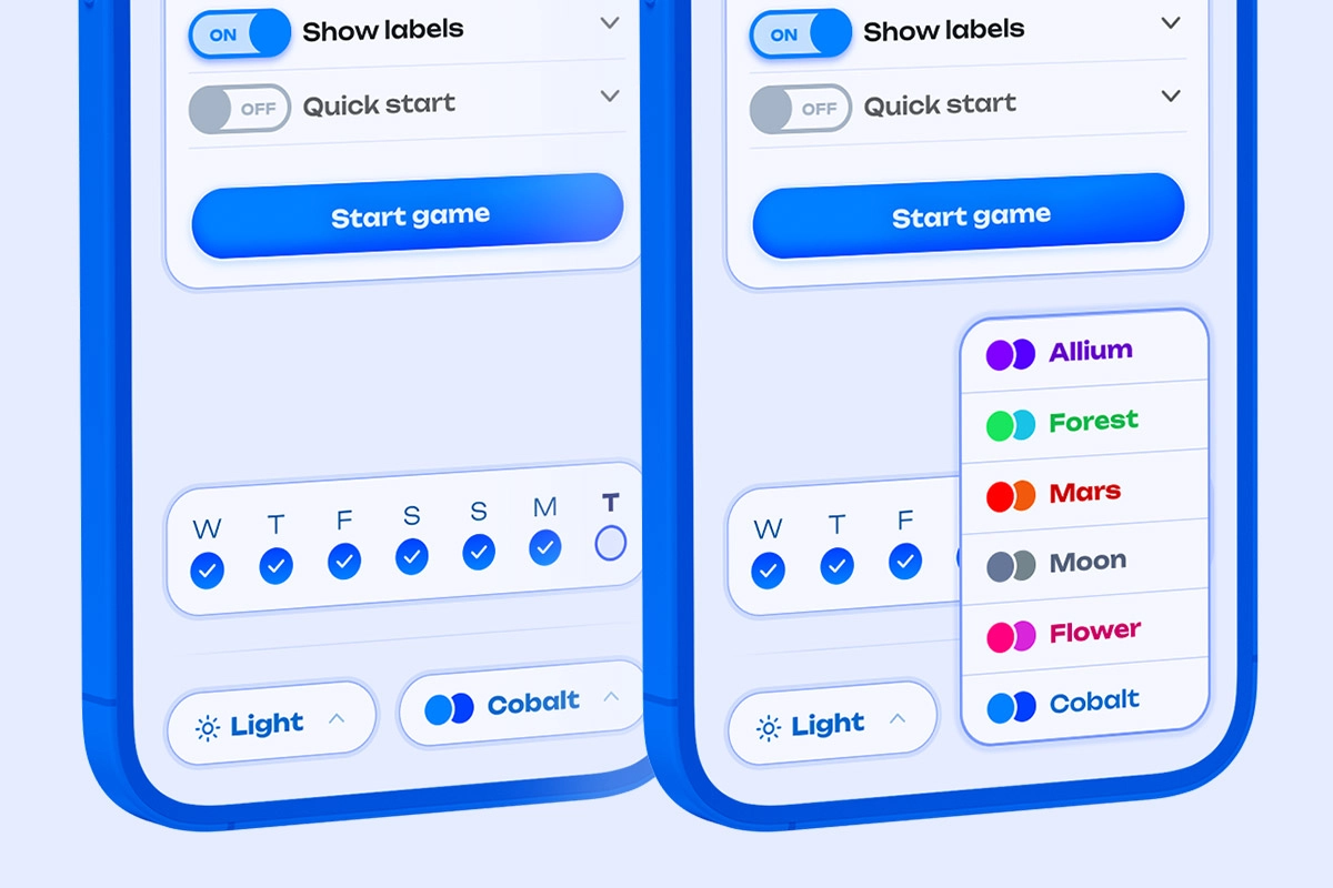 After the MVP, I went to work overhauling the UI implementation. I built a fully themeable design system named Cortex, which handles generating primitive color scales and semantic color tokens based on the current theme, along with other design system tokens for type scales, spacing and more.